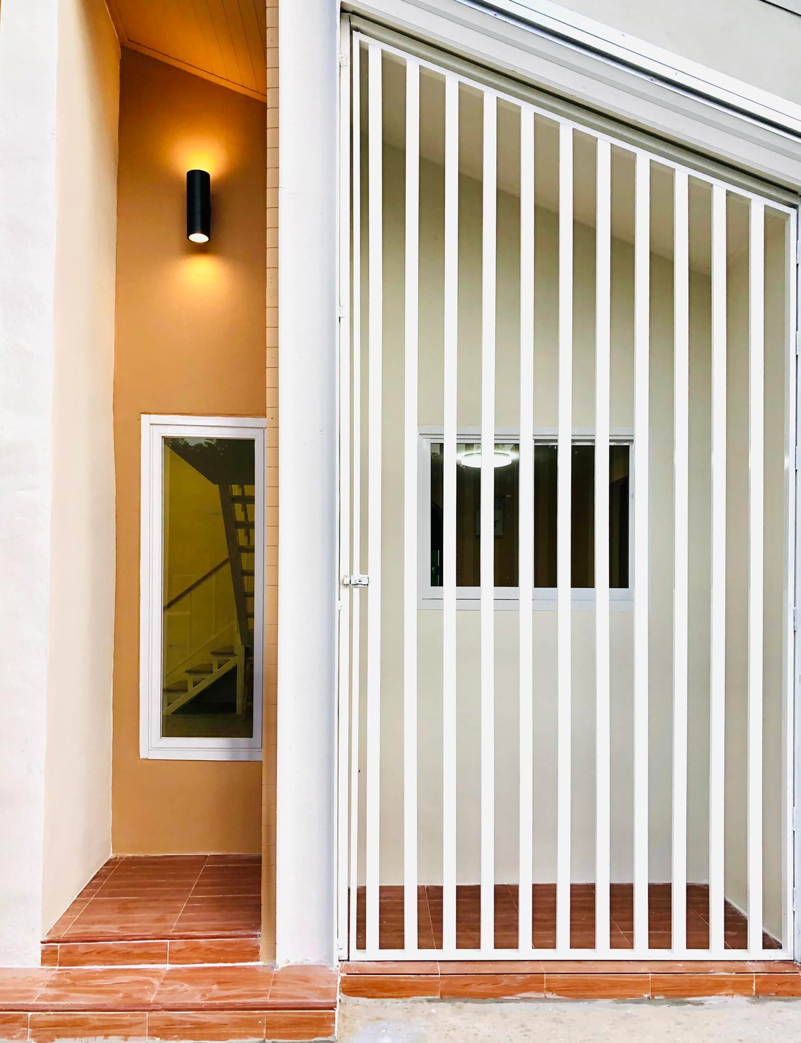 พื้นที่ด้านหลังบ้านถูกออกแบบให้มีเฉลียงกว้างที่สามารถใช้งานได้หลากหลาย ทั้งเป็นลานซักล้าง หรือเป็นมุมสำหรับพักผ่อนก็ได้เช่นกัน