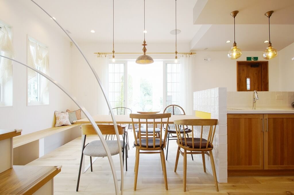 อีกมุมหนึ่งของห้องรับประทานอาหารที่เราจะเห็นการออกแบบที่สวยงามผ่านองค์ประกอบและเฟอร์นิเจอร์งานไม้ที่ทำให้ห้องมีความอบอุ่นน่าอยู่