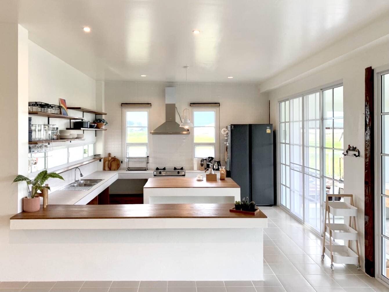 สำหรับห้องครัวนั้น เป็นพื้นที่ ๆ พิเศษเลยทีเดียว เพราะมีการออกแบบเคาน์เตอร์ทั้งแบบตัวยู และแบบเกาะกลาง จึงทำให้มีพื้นที่ในการทำอาหารที่กว้างและสะดวกสุด ๆ
