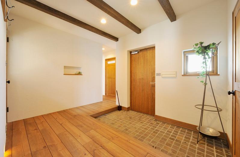 เมื่อเข้ามาด้านในบ้าน เราจะพบกับโถงหลังประตูบ้าน ซึ่งจะเป็นลักษณะแบบยกพื้นขึ้นสูง อันเป็นเอกลักษณ์ของบ้านญี่ปุ่น เพื่อให้เป็นพื้นที่สำหรับถอดและเก็บรองเท้า ณ บริเวณนี้