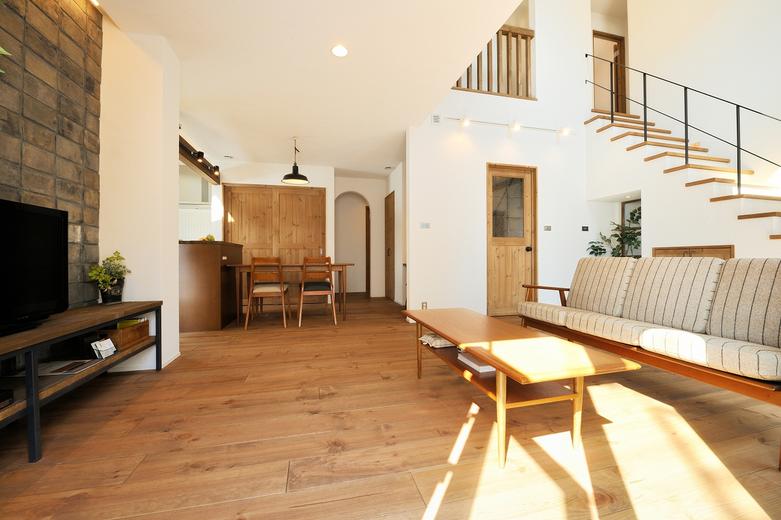 ห้องโถงหลักของบ้าน มีพื้นที่ใช้สอยขนาดใหญ่ จึงเชื่อมต่อกับพื้นที่หลาย ๆ ส่วนของบ้าน อย่างบริเวณนี้จะเป็นห้องนั่งเล่นที่เชื่อมไปยังพื้นที่โต๊ะรับประทานอาหารและห้องครัว