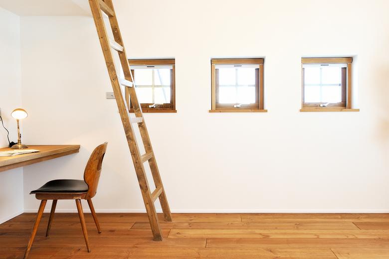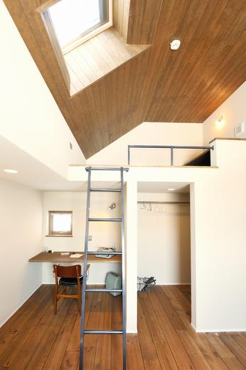 ห้องนี้เป็นห้องใต้หลังคาที่ออกแบบให้เป็นพื้นที่สำหรับนั่งทำงาน แถมยังออกแบบให้มีชั้นลอยที่สามารถใช้นอนพักผ่อนได้ ที่เพดานเราจะสังเกตเห็นหลังคาแบบสกายไลท์ที่ช่วยให้แสงสว่างภายในพื้นที่ห้อง
