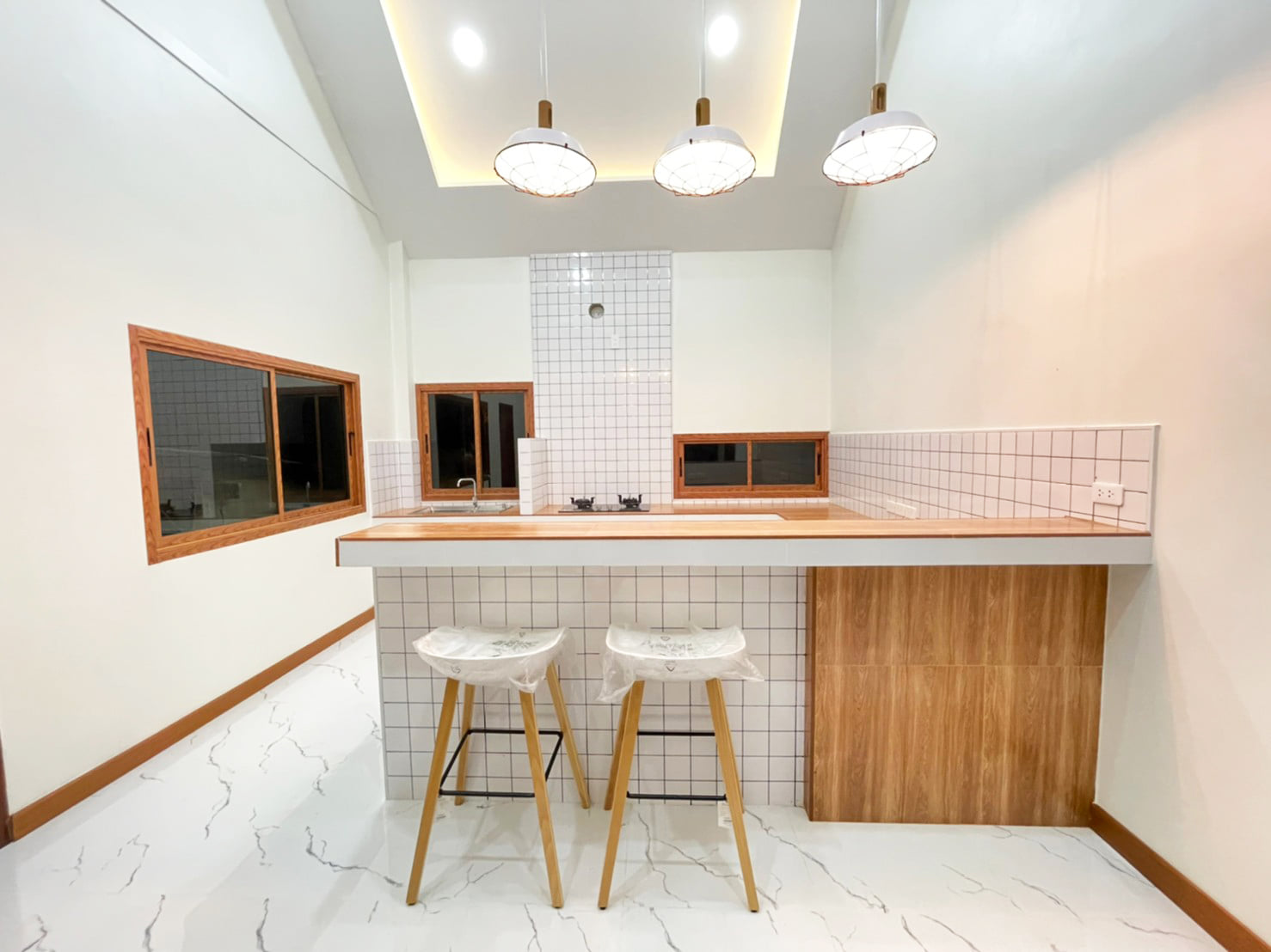 ภายในห้องครัวจะมีธีมและบรรยากาศที่ให้ความมินิมอลสูง ทั้งโทนสีอบอุ่นและของตกแต่ง ก็ล้วนแต่ช่วยสร้างบรรยากาศที่แสนสบาย