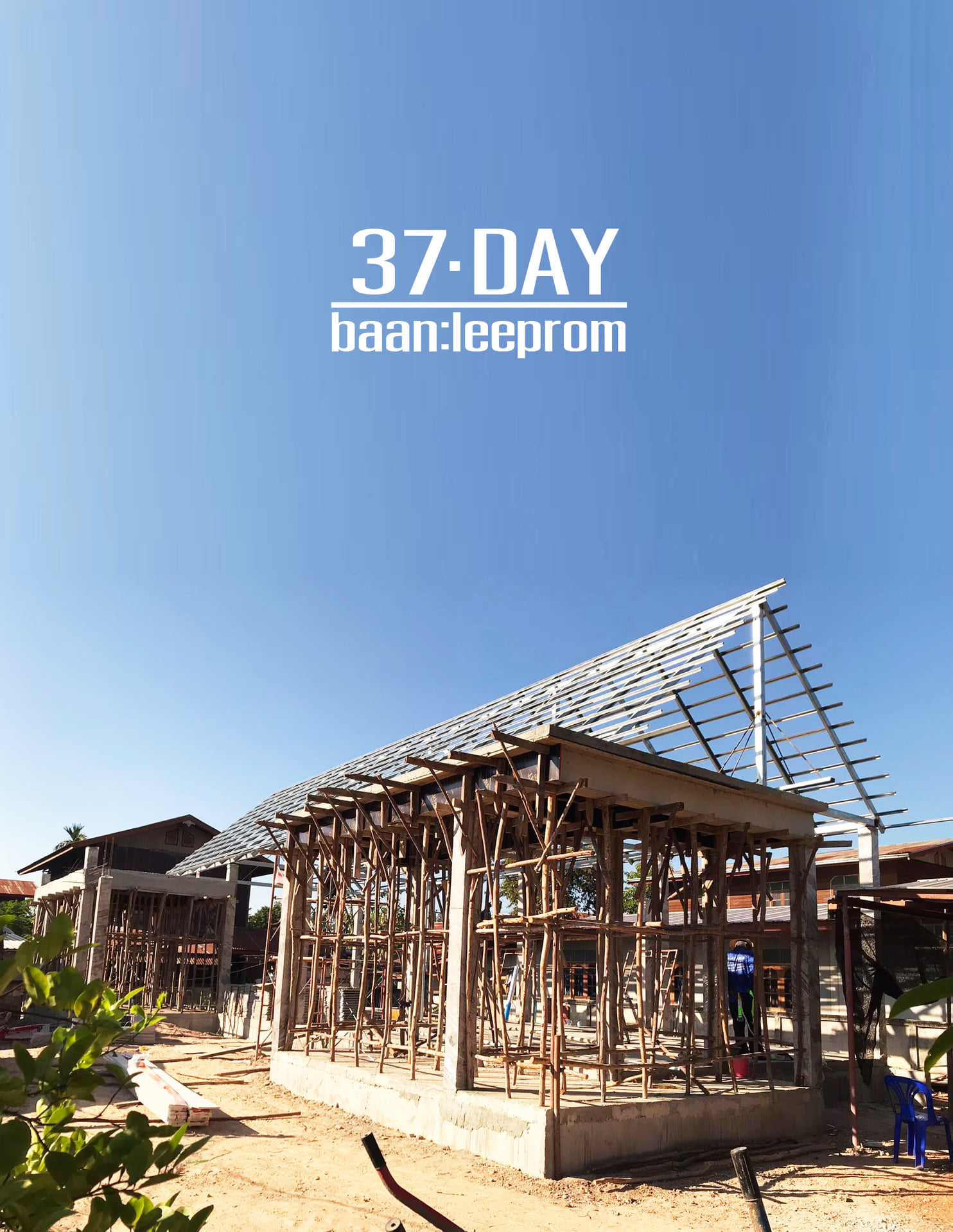หลังจากที่ได้รื้อถอนบ้านหลังเก่าออกไปแล้ว จึงได้เริ่มสร้างบ้านหลังใหม่ทันที ในภาพนี้ เป็นวันที่ 37 ของการก่อสร้าง ซึ่งมีงานโครงสร้างที่เริ่มเป็นรูปเป็นร่างแล้ว