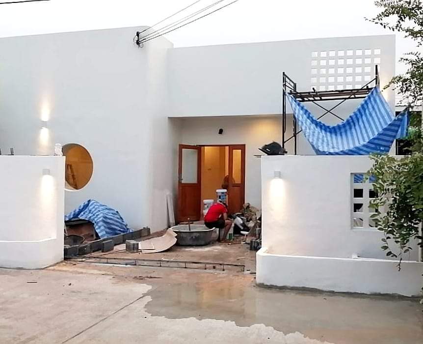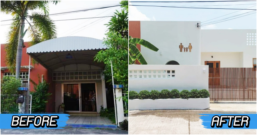 และนี่คือบ้านก่อนที่จะมีการรีโนเวท เป็นบ้านปูนชั้นเดียวรูปทงแบบธรรมดา เราจะสังเกตได้ว่าตัวบ้านน่าจะมีอายุและการใช้งานมาแล้วหลายปี จึงถึงเวลาที่จะได้ทำการปรับปรุงใหม่เสียที