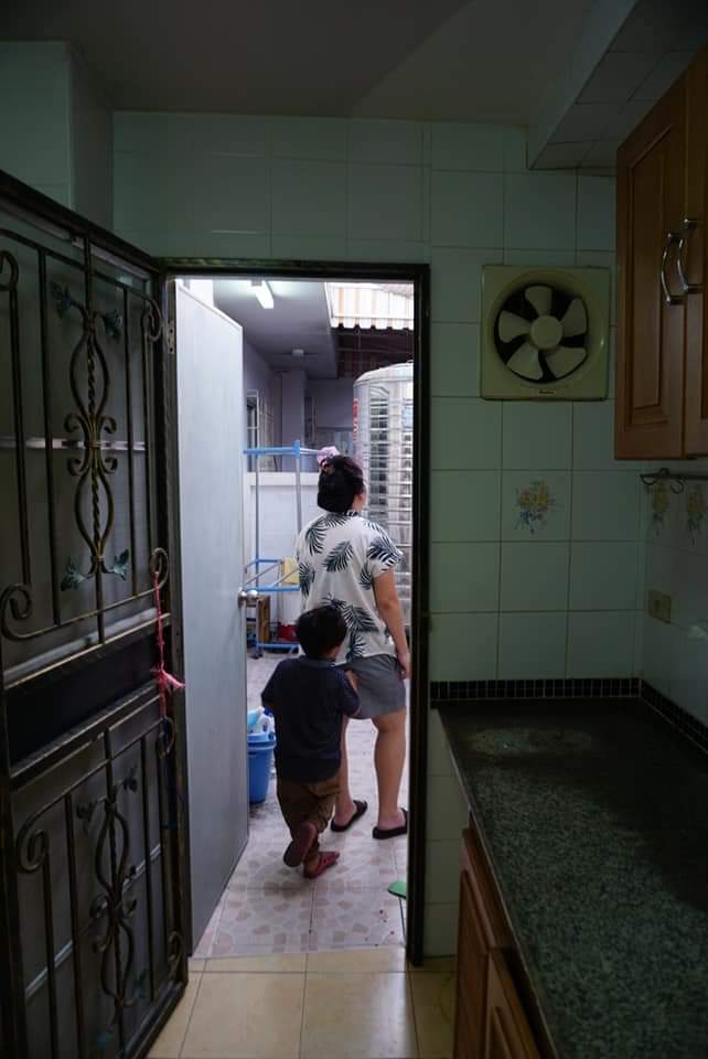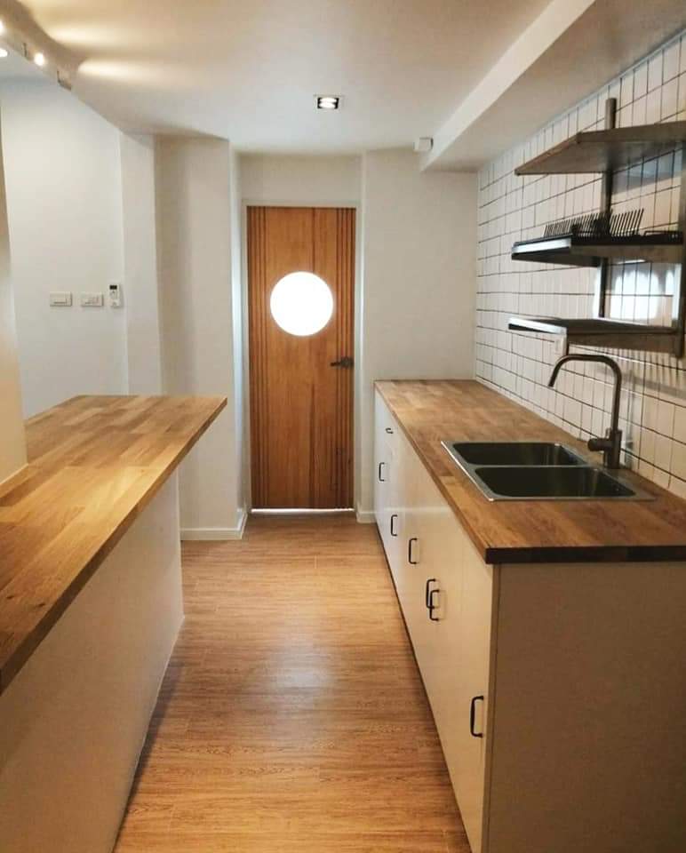 ห้องครัวพร้อมกับทางเชื่อมไปยังหลังบ้าน
