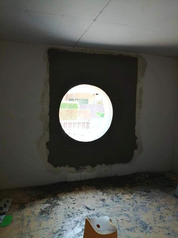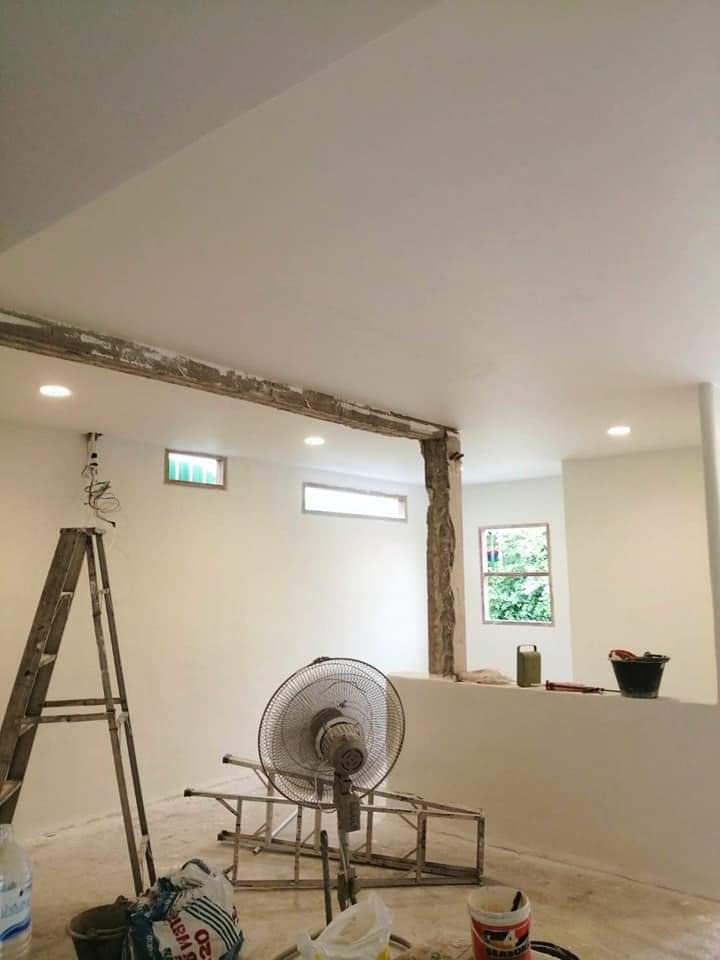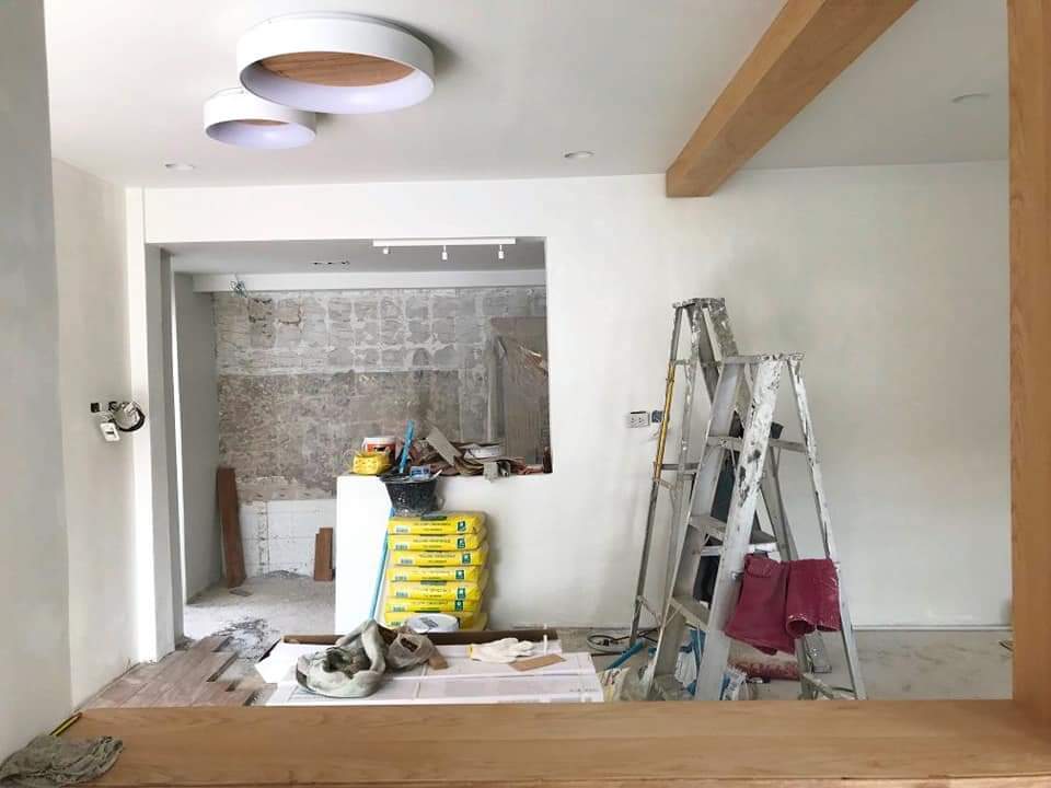 เมื่อได้มีการสำรวจพื้นที่ต่าง ๆ แล้ว รวมถึงวางแผนการออกแบบต่าง ๆ จึงได้เริ่มการปรับปรุงบ้าน โดยเริ่มจากด้านหน้าของบ้านที่มีการทุบผนังเกิมออก จากนั้นจึงได้ก่อผนังใหม่ขึ้นมา