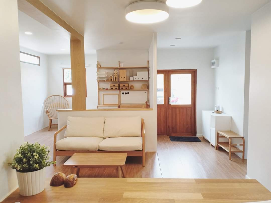 หลังจากที่ทำส่วนโครงสร้างเสร็จเรียบร้อยหมดแล้ว บ้านใหม่ก็พร้อมสำหรับการตกแต่งภายใน โดยจะเห็นได้ว่าการตกแต่งนั้นจะเลือกใช้เฟอร์นิเจอร์งานไม้แบบมินิมอลเป็นหลัก