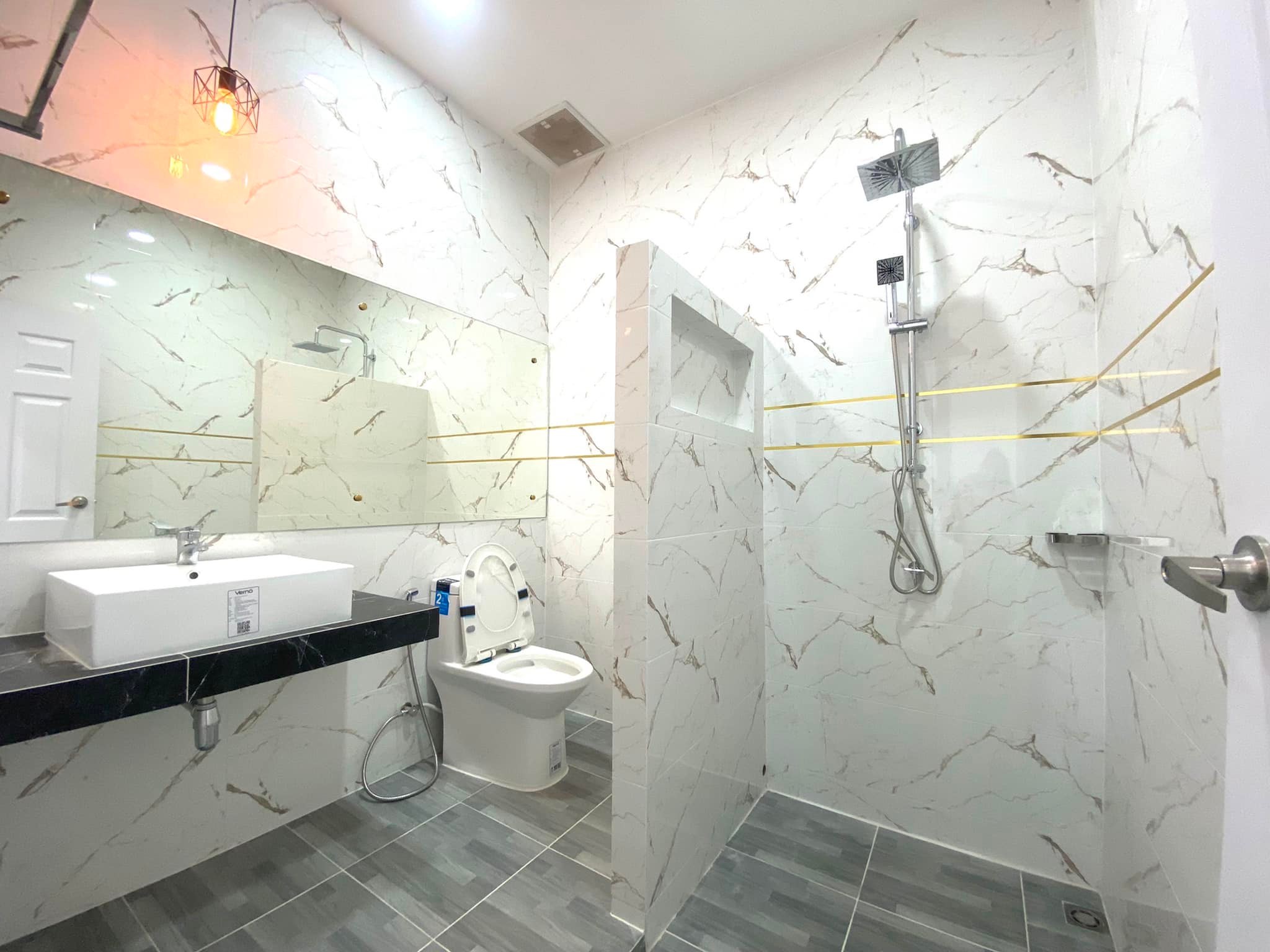 ห้องน้ำเด่นขึ้นด้วยกระเบื้องลายหินอ่อน