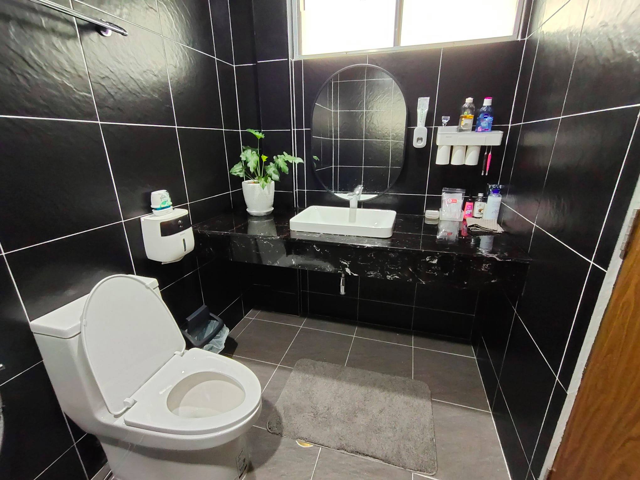 ห้องน้ำอีกห้องที่ตกแต่งในแบบโมเดิร์นโทนสีน้ำ