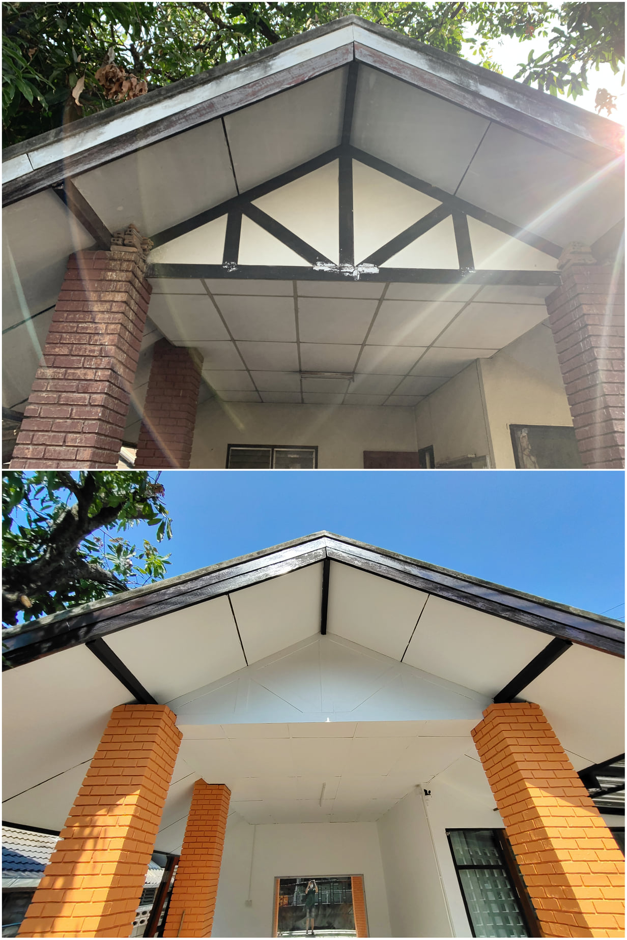 บริเวณหน้าจั่วของหลังคาโรงจอดรถ