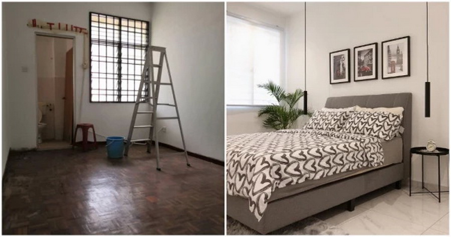 ห้องนอนจากเดิมที่เป้นห้องเรียบ ๆ ที่ปูพื้นด้วยแผ่นไม้ปาเก้ ถูกเปลี่ยนเป็นพื้นกระเบื้องสีครีม พร้อมกับการตกแต่งในโทนสีเดียวกันที่ดูอบอุ่นมากขึ้นกว่าเดิม