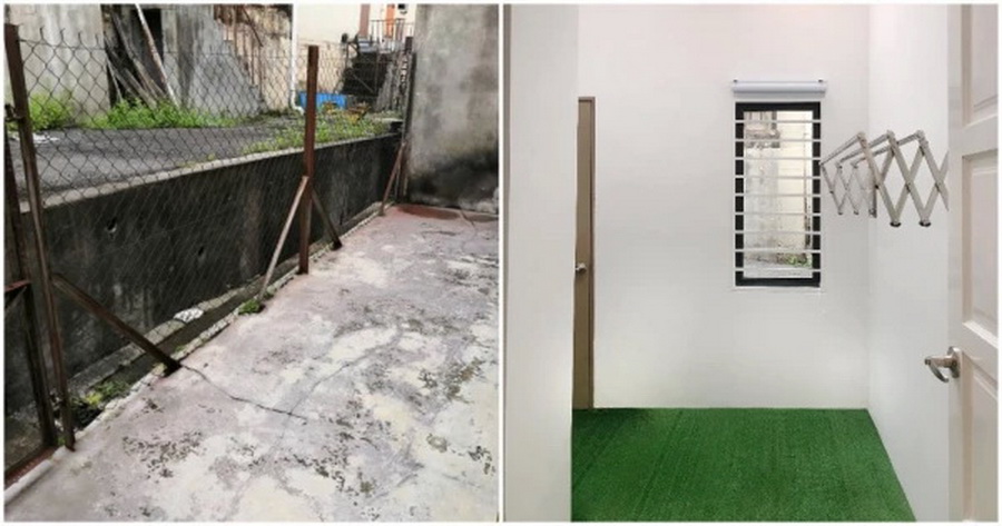 พื้นที่ด้านหลังของบ้านที่เป็นลานซักล้างเก่า ถูกเปลี่ยนให้เป็นห้องเอนกประสงค์ที่ถูกปูพื้นด้วยหญ้าเทียม ทำให้สามารถใช้งานได้หลากหลาย