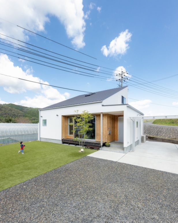 สำหรับบ้านหลังนี้ เป็นบ้านขนาดกลางที่มีชั้นเดียว ตัวบ้านมีรายละเอียดการออกแบบและตกแต่งที่เรียบง่ายตามแบบฉบับบ้านมินิมอล ซึ่งจะสะท้อนผ่านการเลือกใช้โทนสีขาวครีมและสีน้ำตาลมาใช้ในการตกแต่ง นอกจากนี้ยังมีสนามหญ้าสีเขียวด้านหน้าที่ช่วยเพิ่มความสดชื่นให้บ้านอีกด้วย