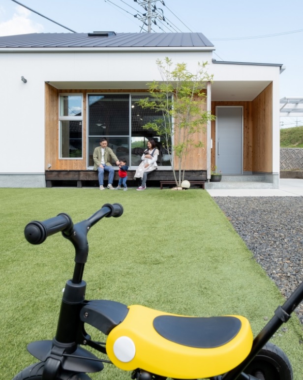 จุดเด่นหนึ่งของบ้านหลังนี้ คือการออกแบบเฉลียงหน้าบ้านแบบยกพื้น ซึ่งเป็นเอกลักษณ์ของการออกแบบบ้านสไตล์ญี่ปุ่นที่มักจะมีเฉลียงลักษณะนี้เอาไว้ใช้พักผ่อนในช่วงหน้าร้อน