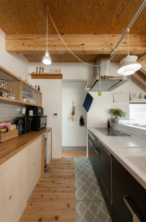 ทางด้านของห้องครัวนั้น เป็นห้องครัวแนวโมเดิร์นทั่ว ๆ ไป แบ่งเคาน์เตอร์ครัวออกเป็นสองฝั่ง จึงสามารถใช้งานได้อย่างสะดวกสบาย