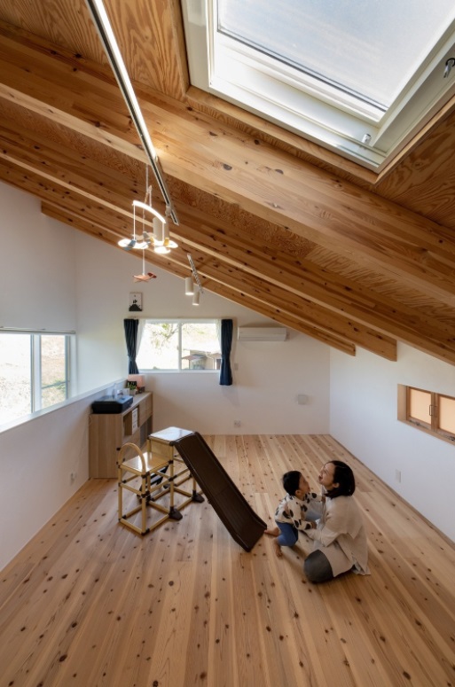 บริเวณนี้จะเป็นพื้นที่ชั้นลอย ซึ่งเป็นโถงเอนกประสงค์ที่อยู่ติดหลังคา ที่สามารถใช้งานได้หลากหลาย โดยเฉพาะกับการพักผ่อน นอกจากนี้หลังคาบริเวณนี้ยังเป็นแบบสกายไลท์อีกด้วยนะ