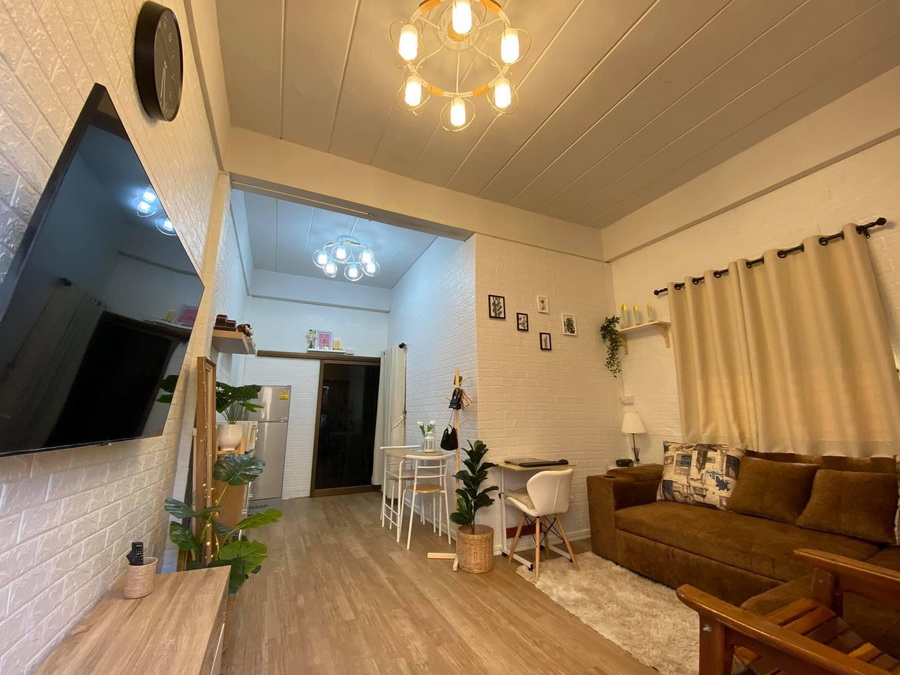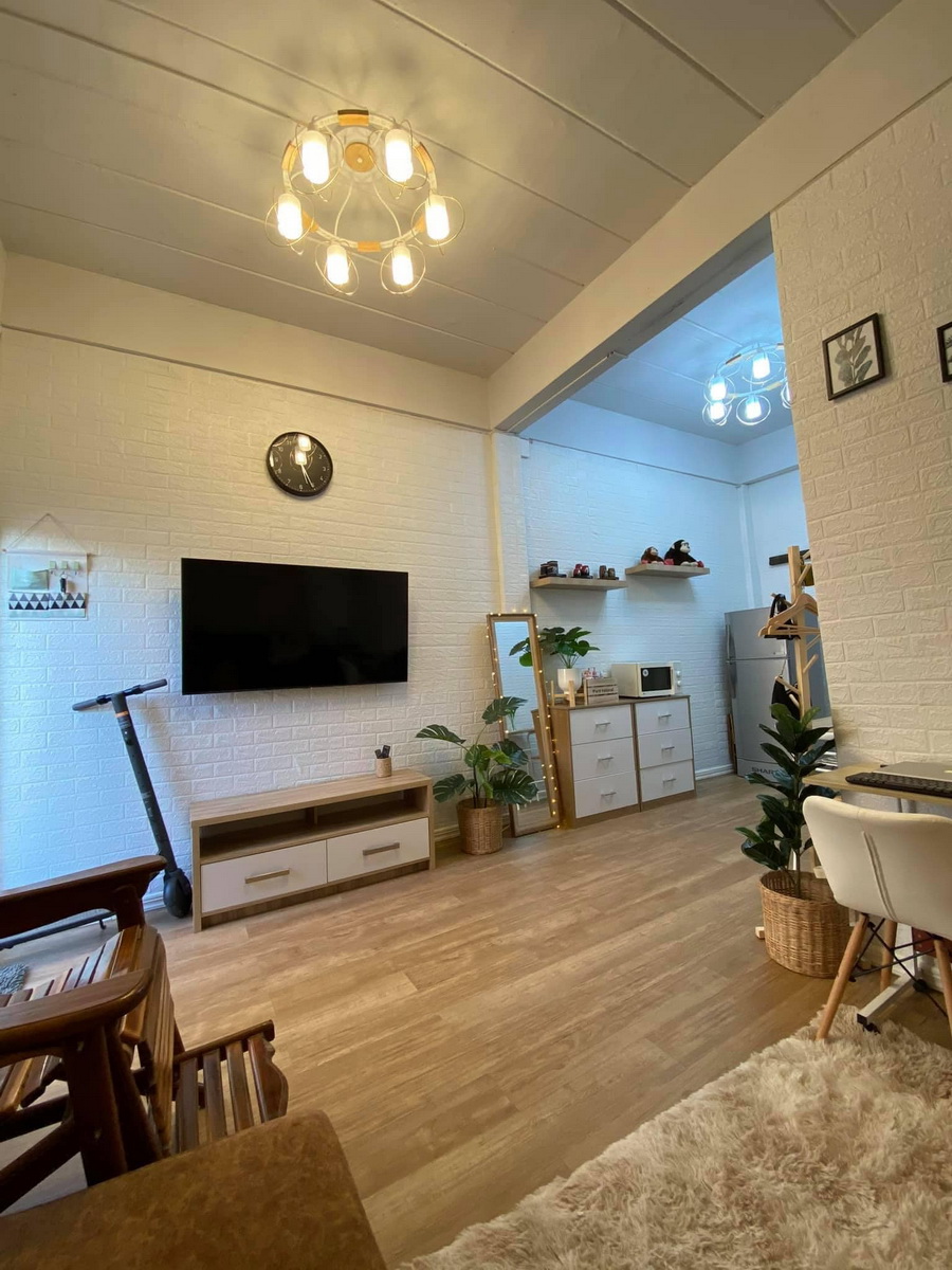 สภาพห้องหลังจากการรีโนเวทและตกแต่ง ภายในห้องให้บรรยากาศที่ดูอบอุ่นและผ่อนคลาย โดยมาจากการเลือกใช้โทนสีครีมและสีน้ำตาลอ่อน ผสานกับแสงไฟสีนวลตา