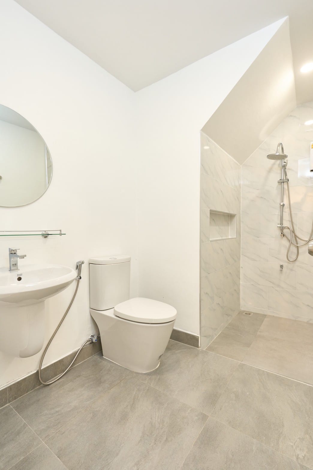 ทางด้านห้องน้ำจะมีการตกแต่งที่เรียบง่าย ภายในมีสิ่งอำนวยความสะดวกที่ครบครัน จึงสะดวกและสามารถใช้งานได้ปลอดภัย