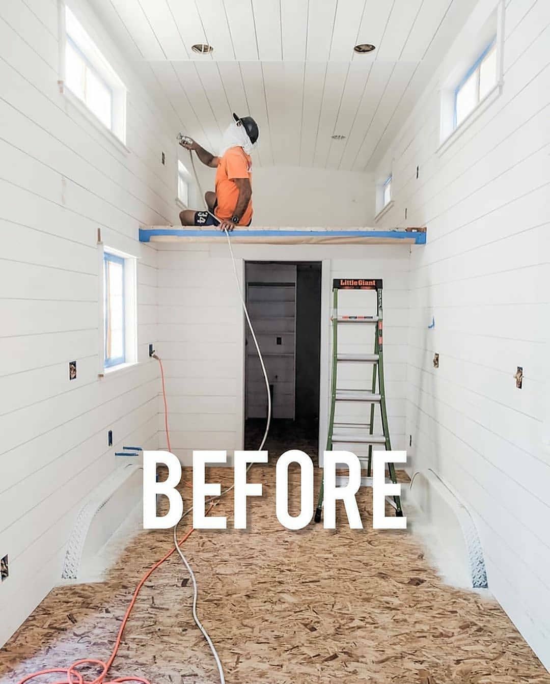 ทีนี้เรามาชมกันในส่วนของการตกแต่งภายในกันบ้าง โดยสภาพเดิมของภายในรถบ้าน ก็จะมีพื้นที่โล่ง ๆ แบบนี้ ผนังเป็นไม้ที่ทาด้วยสีขาว พื้นห้องจะปูด้วยแผ่นไม้อัด