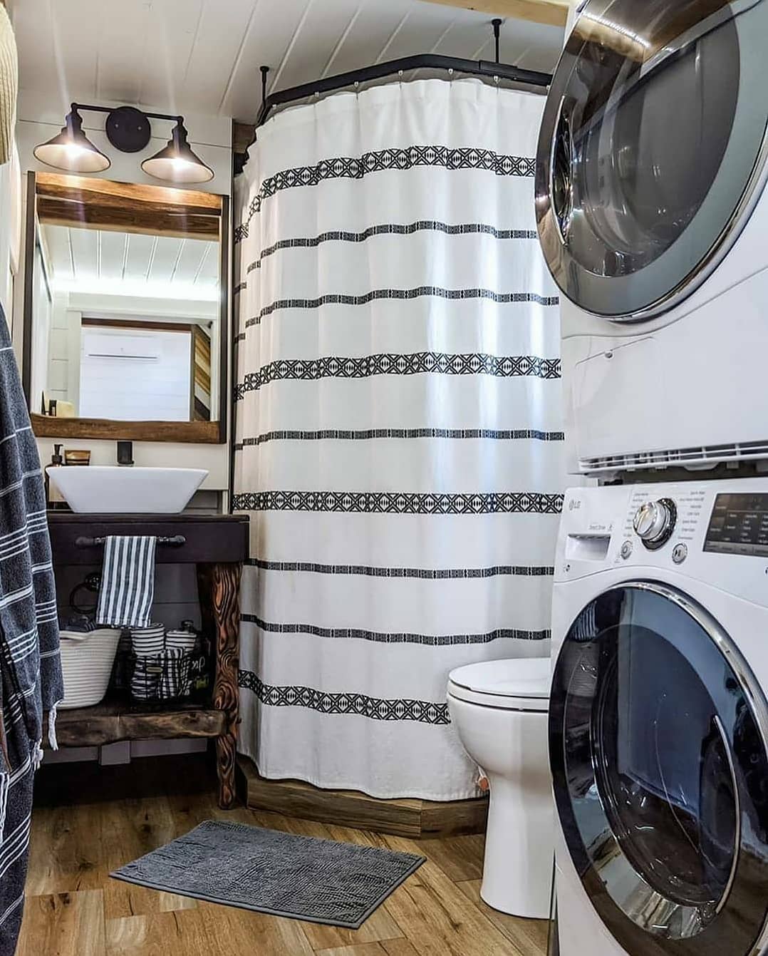ภายในห้องน้ำ ถูกอัดอั้นไปด้วยสิ่งอำนวยความสะดวกที่ครบครัน สามารถใช้เป็นห้องซักรีดไปด้วยในตัว และละมุมก็จัดได้อย่างเป็นสัดส่วนสวยงาม ซึ่งนับว่าเป็นการออกแบบที่น่าสนใจไม่น้อยเลย สำหรับไอเดียรถบ้านหลังนี้…