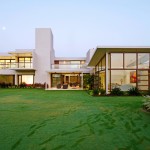 ตัวบ้านทาด้วยสีขาวเรียบๆ เป็นบ้านแบบหน้าแคบหลังกว้าง เสริมสนามหญ้าเพิ่มความร่มรื่นไว้ที่ด้านหลัง กับพื้นที่ใช้สอยด้านข้าง ที่เปิดโล่งรับบรรยากาศอย่างเต็มที่ น่าอยู่ครับ