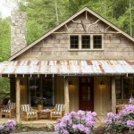ตัวบ้านขนาดสองชั้น สร้างจากไม้ทั้งหลัง ออกแบบหลังคาทรงจั่ว ตั้งอยู่กลางป่าบนภูเขา รายล้อมไปด้วยต้นไม้และบรรยากาศสีเขียว มองเห็นตัวบ้านได้อย่างเด่นชัดจากที่ไกลๆ