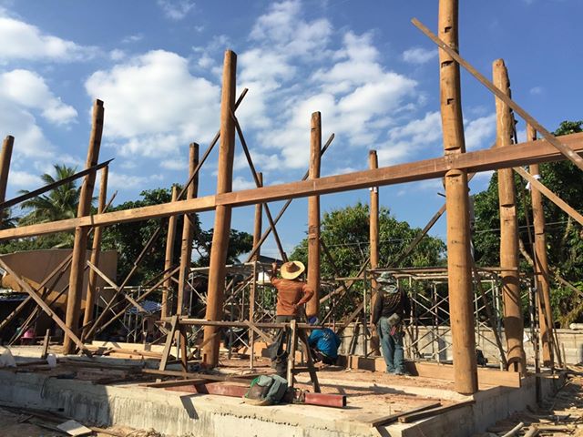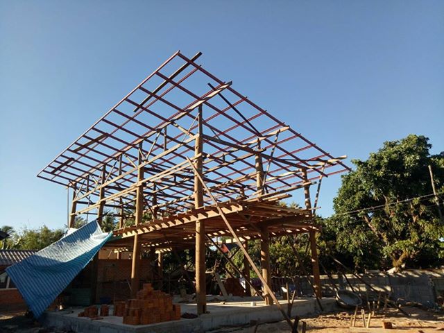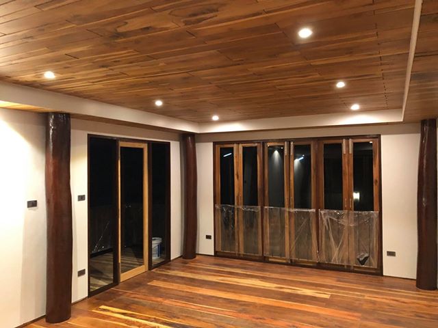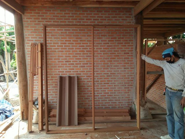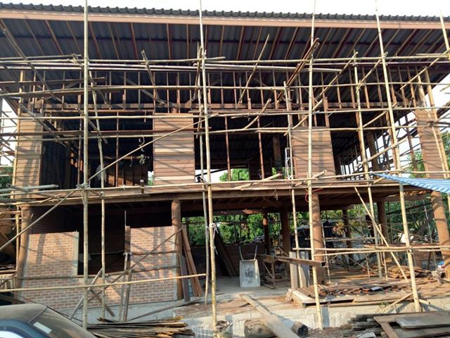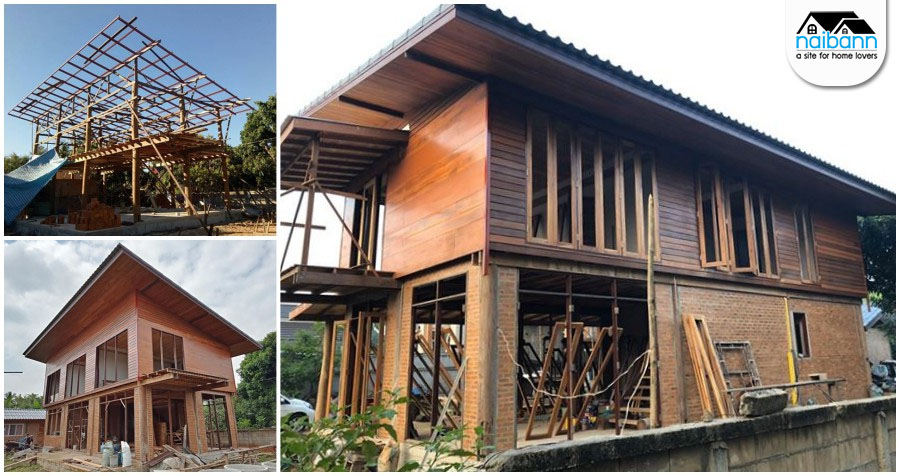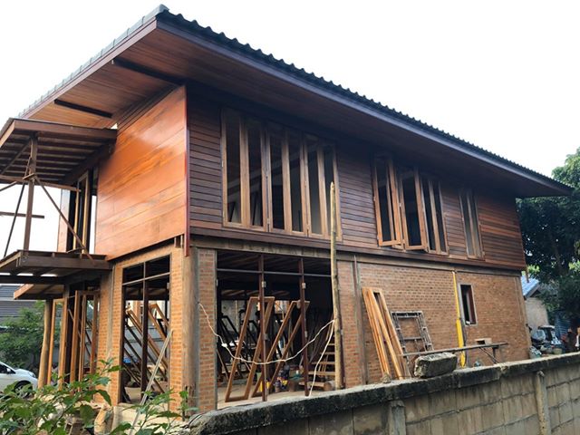 การสร้างบ้านครั้งนี้ใช้ระยะเวลาถึง 2 ปีเต็ม เนื่องจากใช้ไม้สักที่ปลูกจากสวนของเจ้าของบ้านเอง จึงต้องเสียเวลาทำเรื่องต่างๆ ตั้งแต่ขอใบอนุญาต จ้างตัดไม้ เอาไม้ไปแช่น้ำ ตากให้แห้ง ฯลฯ โดยไม้สักเหล่านี้ถูกนำมาทำเป็นเพดานทั้งหมด