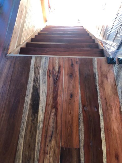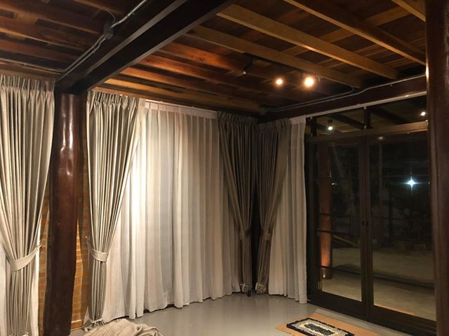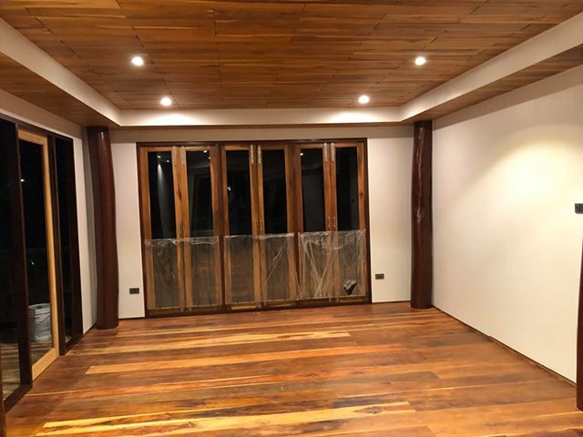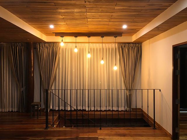 พื้นไม้ของบ้านหลังนี้ใช้ไม้ประดู่เก่าเก็บ รวมไปถึงผนังและพื้น ก็ใช้ไม้เก่าเช่นกัน