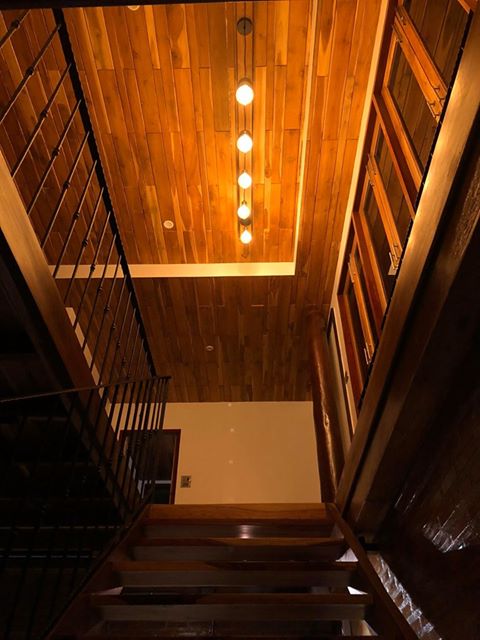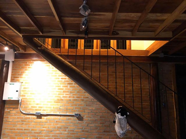เพิ่มกลิ่นอายอินดัสเทรียลลอฟท์เข้าไปด้วยบันไดเหล็ก โคมไฟลอฟท์ และท่อสายไฟ