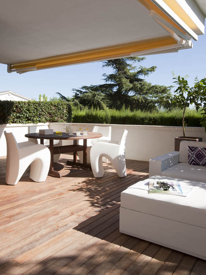 สำหรับการตกแต่ง จะเป็นแนวโมเดิร์นล้ำสมัย ภายใต้โทนสีขาวเรียบๆ ผสมผสานระหว่างงานไม้สวยๆกับเฟอร์นิเจอร์ของตกแต่งที่ดึงเอกลักษณ์ความทันสมัยออกมาได้อย่างเต็มที่ นอกจากนี้ยังมีบริเวณชานบ้านที่ปูพื้นด้วยไม้ จัดเป็นที่นั่งสำหรับพูดคุยหรือจัดกิจกรรมต่างๆ ลองดูแล้วเอาไปเป็นไอเดียการตกแต่งภายในกันได้ตามสบายเลยครับ