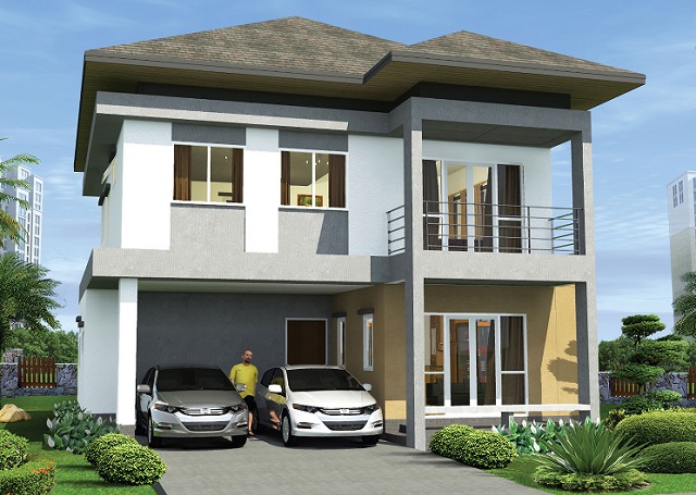 แบบบ้านสองชั้นสไตล์ร่วมสมัย หลังคาทรงปั้นหยา เรียบเท่ทันสมัย เหมาะกับสภาพแวดล้อมในเขตเมือง