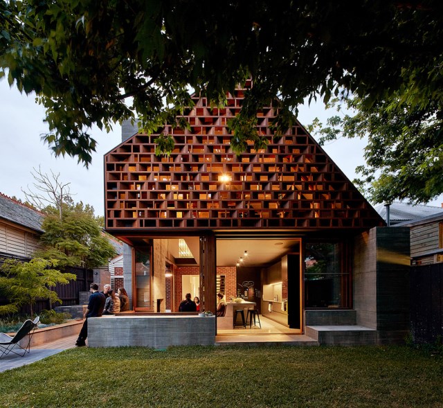 ดีไซน์ตัวบ้านแบบโมเดิร์น รูปทรงเฉียบ แปลกตา หลังคาทรงจั่วเอียงเก๋ๆ ดูเป็นบ้านสมัยใหม่เอามากๆ ผนังโปร่งแสง เน้นโชว์งานตกแต่งภายในตามคอนเซ็ปของบ้าน