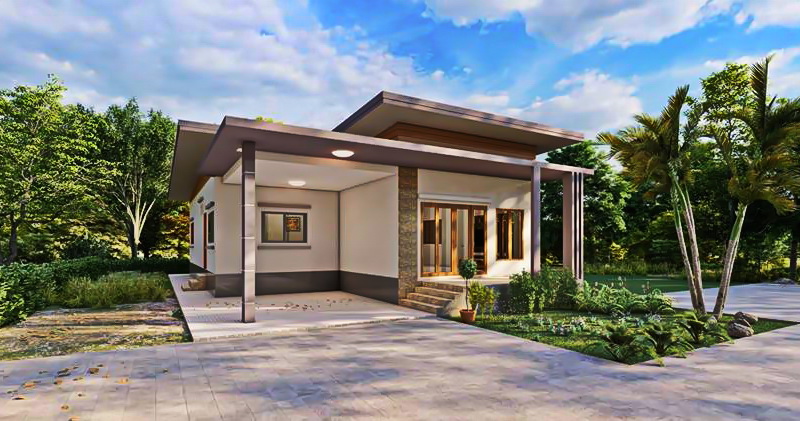 แบบบ้านสไตล์โมเดิร์น หลังเล็กราคาประหยัด ขนาด 2 ห้องนอน 2 ห้องน้ำ งบเริ่มต้นที่ประมาณ 700,000 บาท