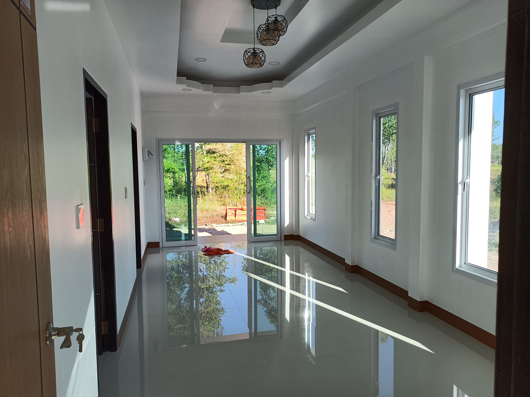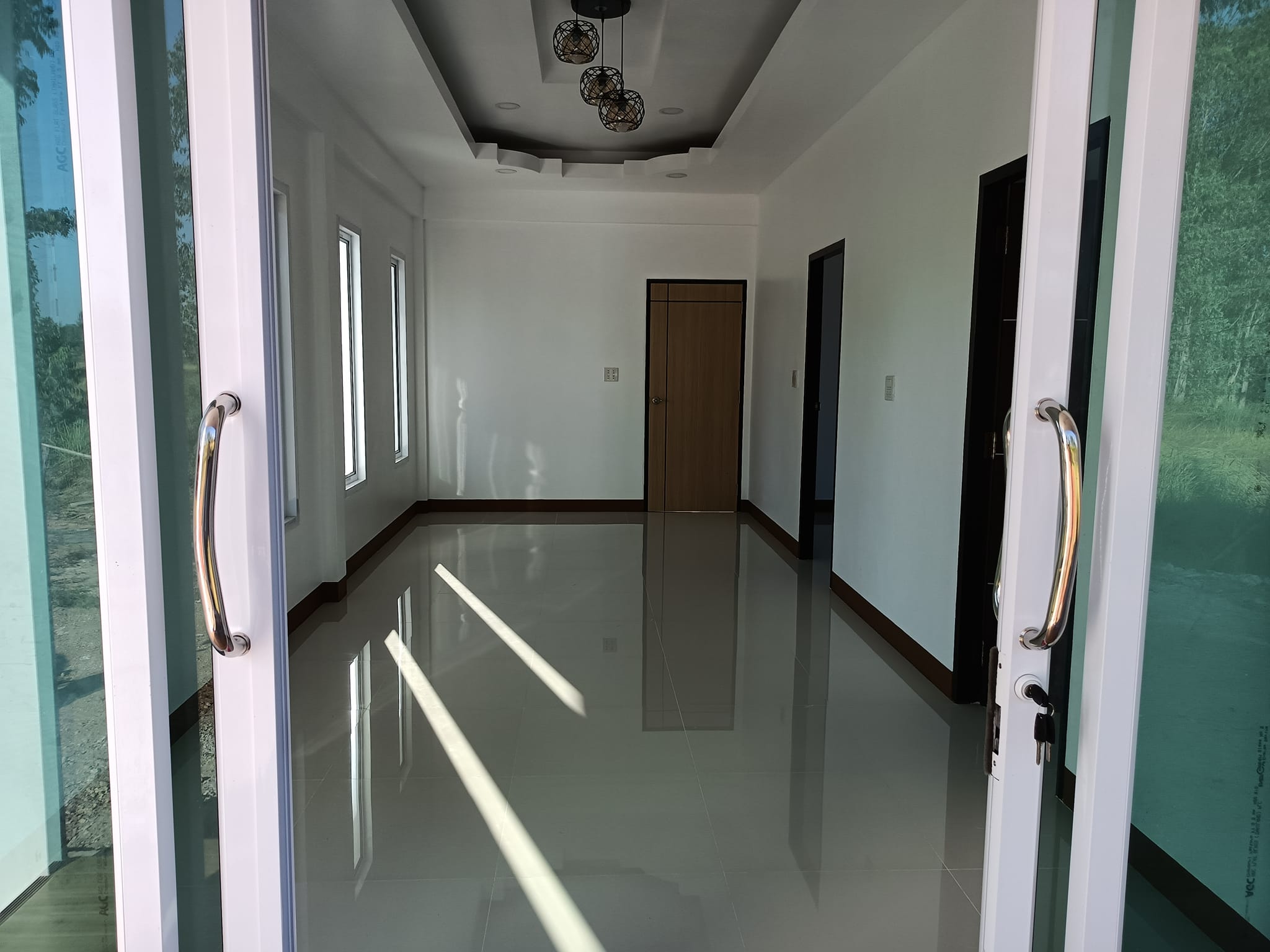 บ้านหลังนี้เป็น บ้านสไตล์โมเดิร์น ตัวบ้านมีขนาดชั้นเดียว มีพื้นที่ใช้สอยแบบพอเหมาะ การออกแบบดีไซน์จะมีรูปทรงที่สวยงามทันสมัย ตกแต่งผนังในโทนสีขาวยืนพื้น แซมด้วยสีน้ำตาลเพื่อเพิ่มลูกเล่น