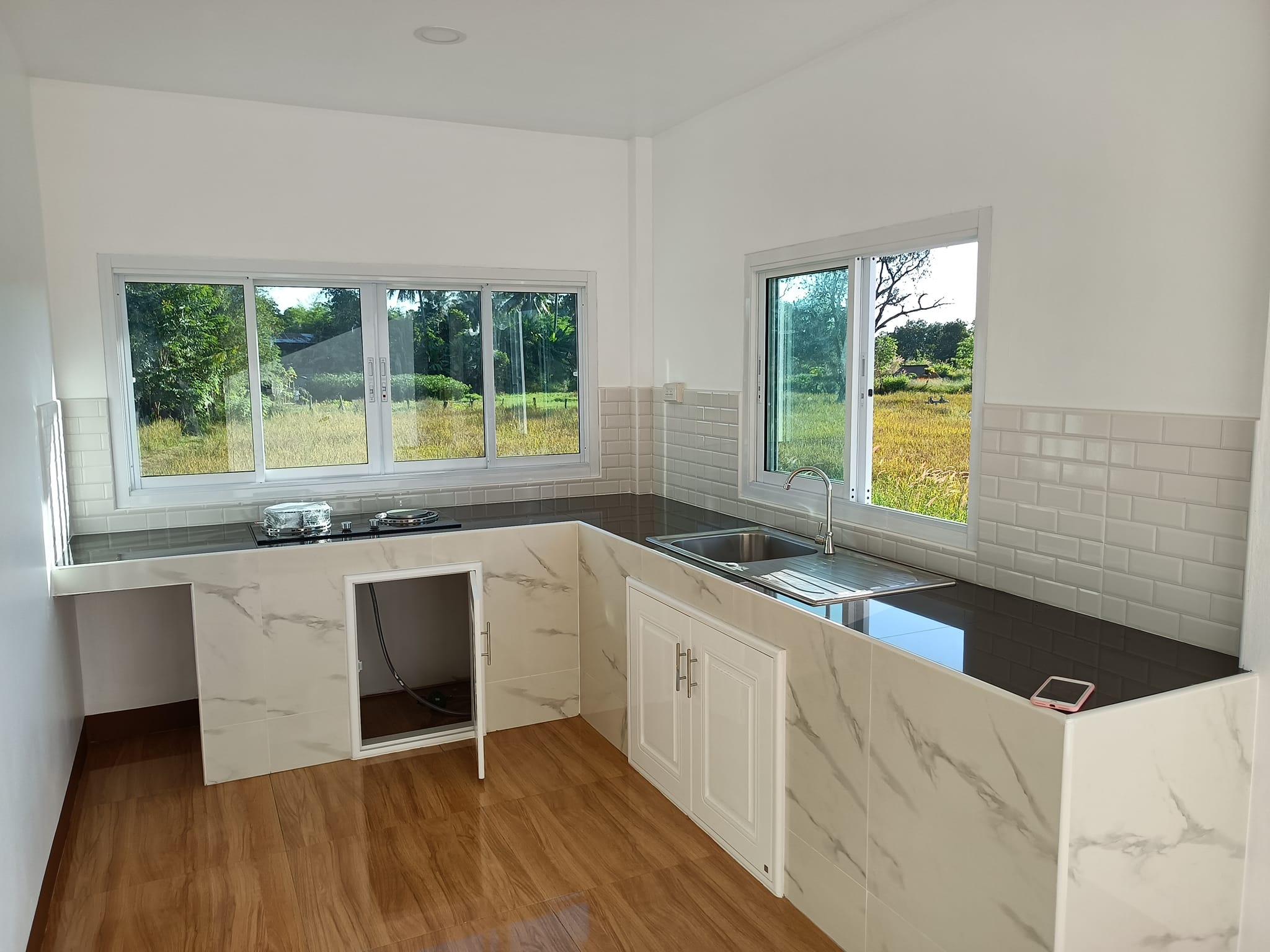 สำหรับห้องครัวนั้น เป็นอีกห้องหนึ่งที่ภายในมีพื้นที่ใช้สอยที่พอเหมาะ โปร่งสบายด้วยหน้าต่างบานใหญ่ จึงสามารถทำอาหารที่มีกลิ่นและควันมากได้อย่างสะดวกเลย
