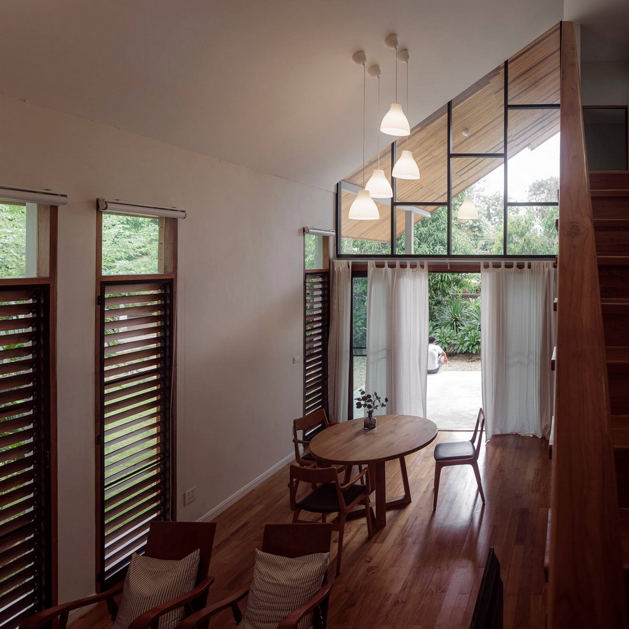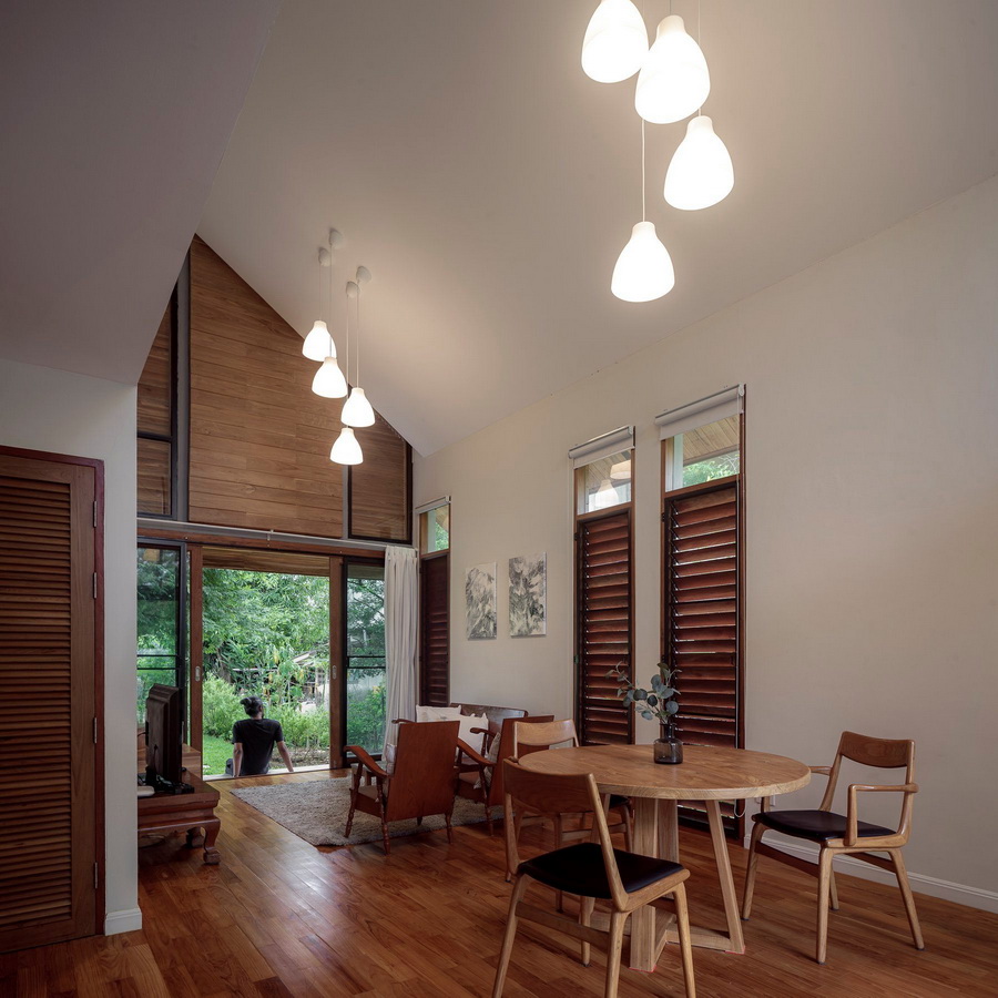 โดยมีการผสานกันของพื้นที่ภายในและภายนอก การใช้งานที่หลากหลาย จนเหมือนทลายเส้นแบ่งของนอกบ้านและในบ้านออกไป เหลือเพียงแค่พื้นที่ใช้งานที่ได้ดังใจตามความต้องการในแต่ละช่วงเวลา