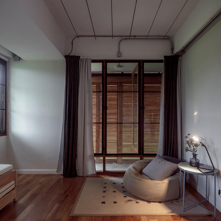 การเข้าถึงพื้นที่ใช้สอยตามแบบบ้านไทยถูกเลือกมาใช้ในการสร้างลำดับความเป็นส่วนตัวของพื้นที่ในบ้าน เฟอร์นิเจอร์ภายในบ้านถูกคัดสรรและตกแต่งเอาไว้เป็นอย่างดี