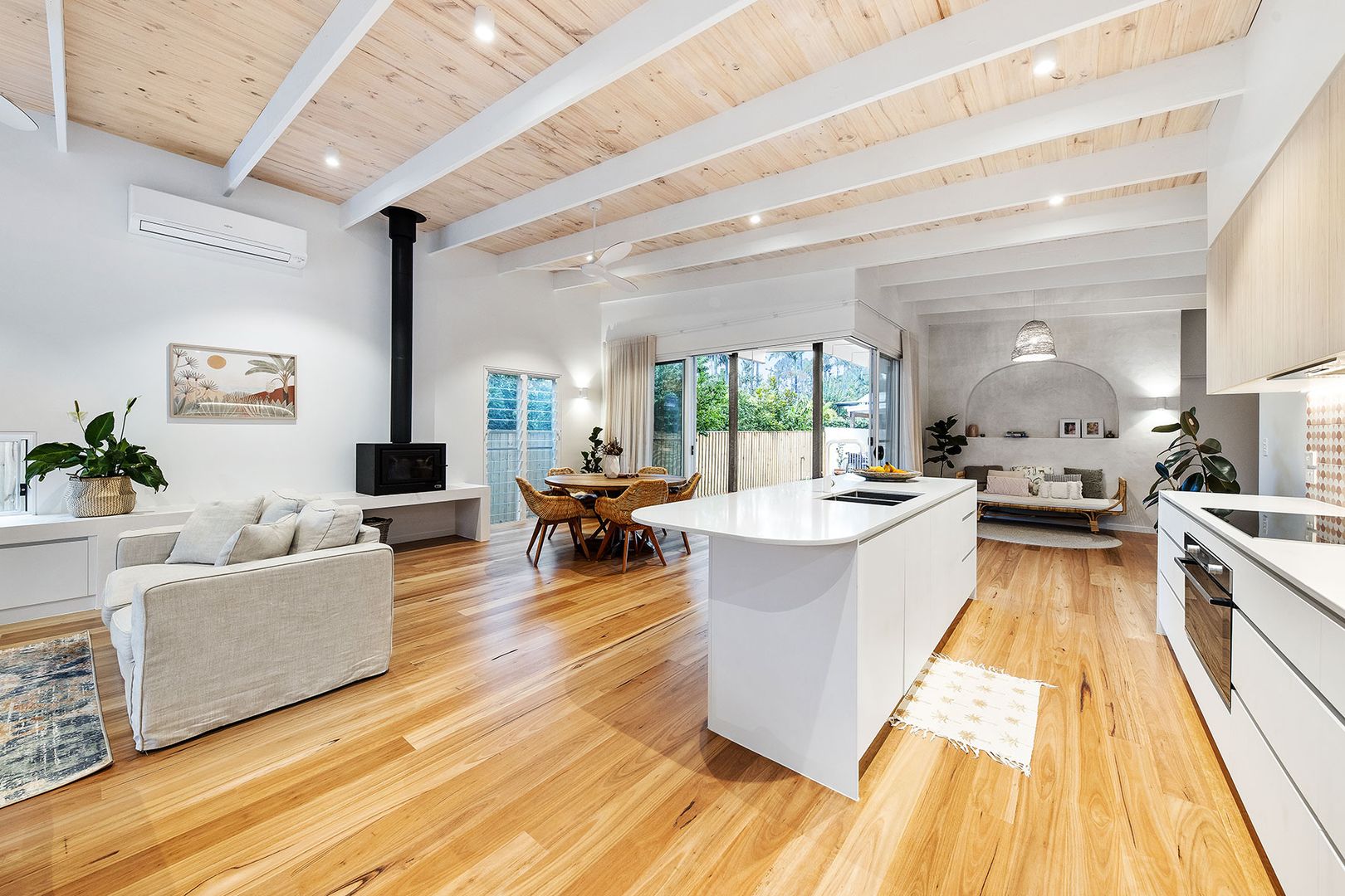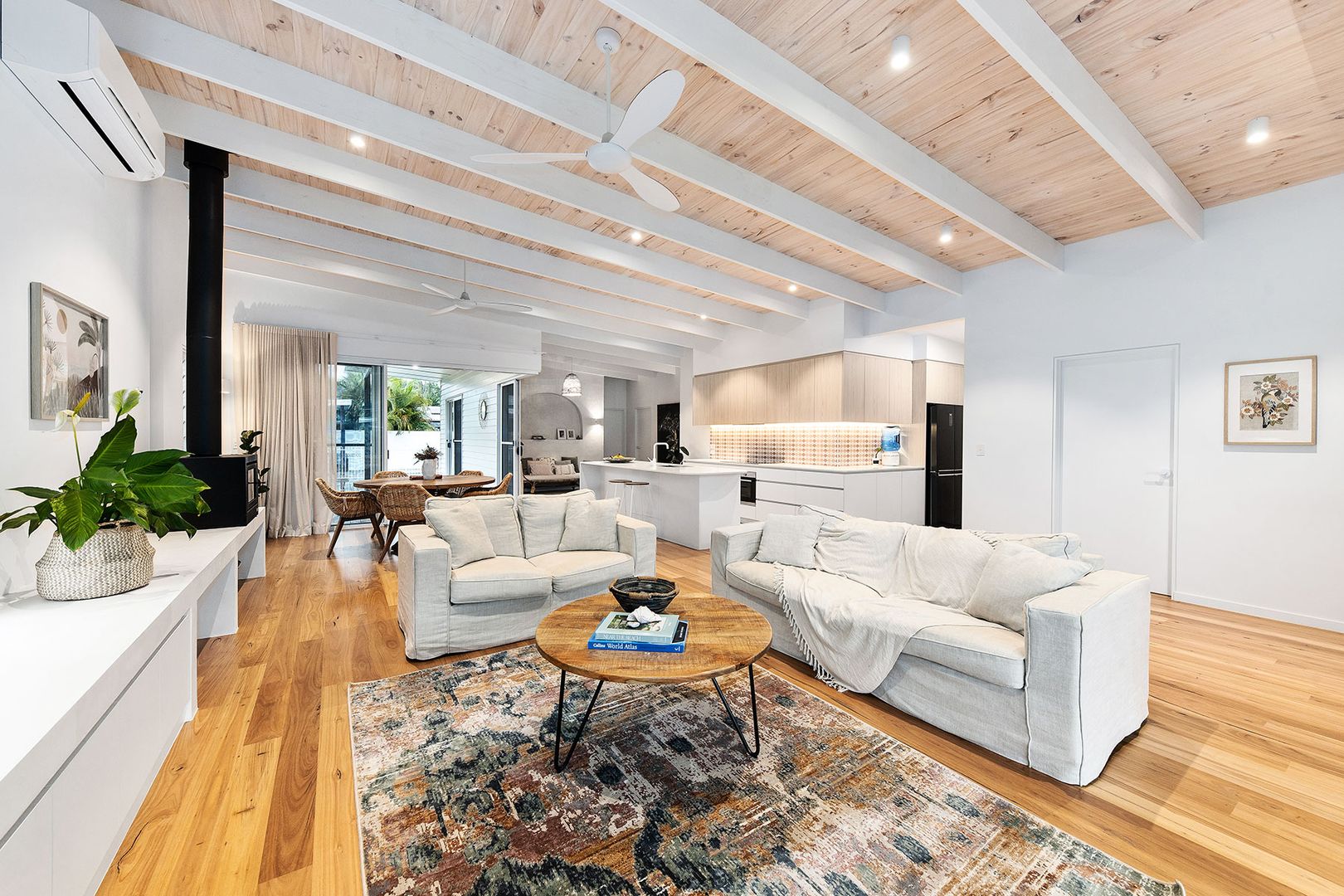 ภายในบ้าน จะจัดวางพื้นที่ใช้สอยที่สำคัญเอาไว้ในห้องโถงใหญ่ ทำให้สมาชิกสามารถเดินไปมาหากันได้ง่าย ไม่ว่าจะกำลังทำกิจกรรมอะไรกันอยู่