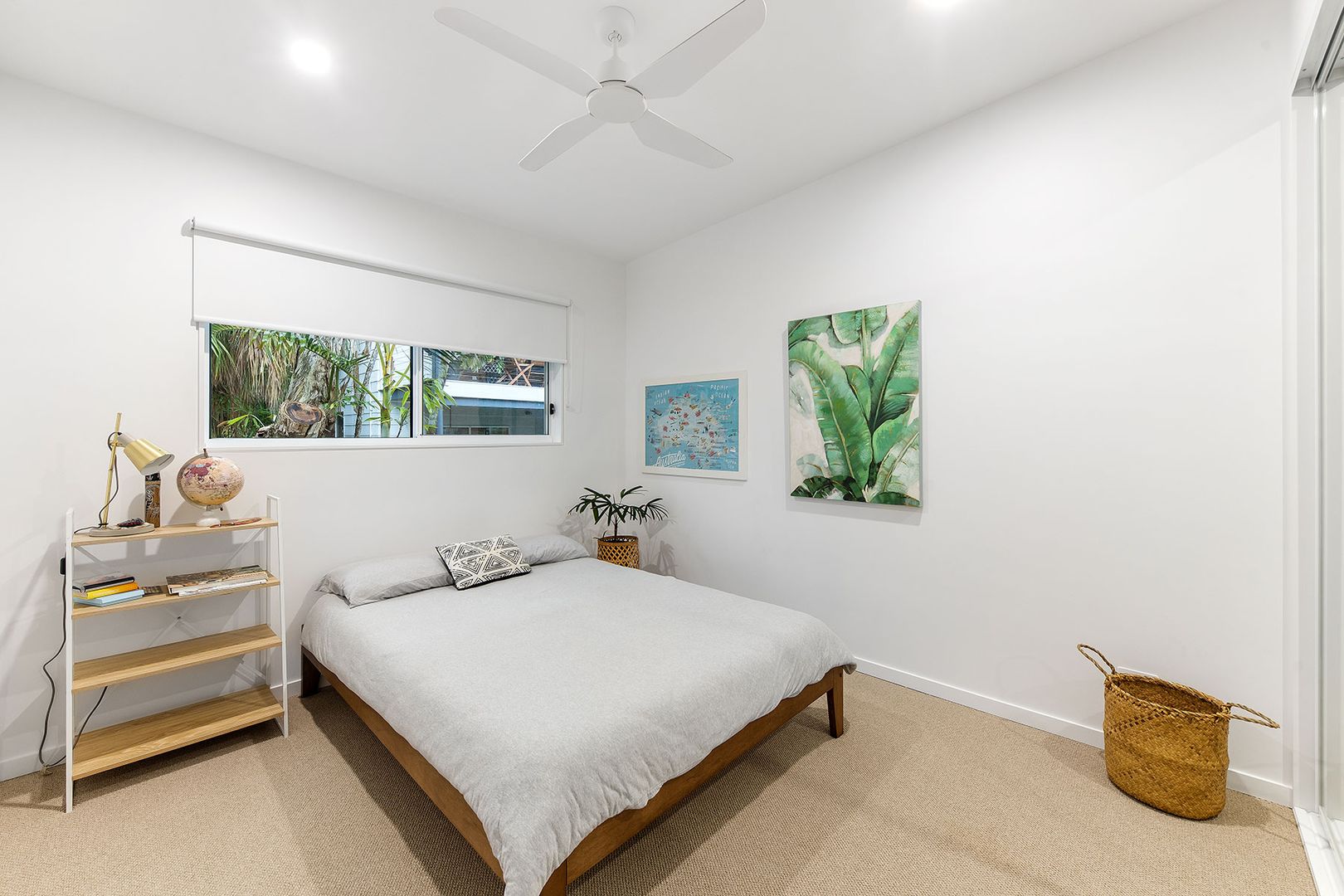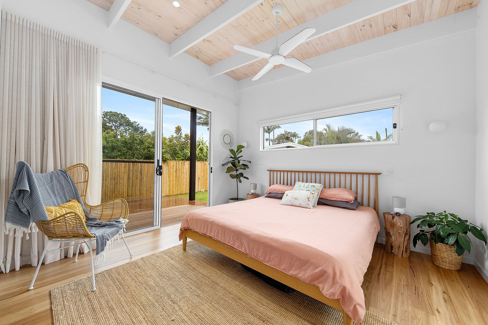 ภายในห้องนอนยังคงมีรูปแบบการจัดวางองค์ประกอบและการตกแต่งที่เน้นบรรยากาศสบาย ๆ สามารถรับแสงและลมได้จากหลายมุม จึงให้บรรยากาศที่ผ่อนคลายเอามาก ๆ