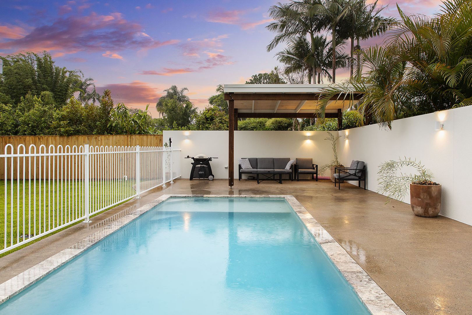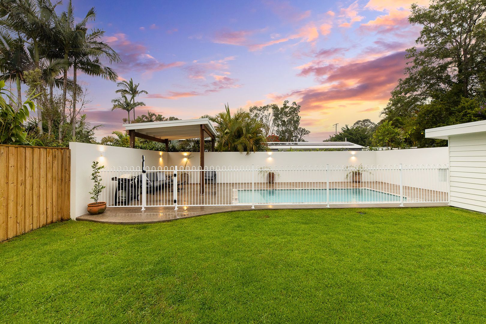 เมื่อเดินตัดสนามไปที่ส่วนหลังบ้าน ก็จะเป็นพื้นที่สระว่ายน้ำส่วนตัว มีลานกว้างให้ทำกิจกรรมกลางแจ้ง ที่สำคัญ บริเวณสระจะมีรั้วกั้นเอาไว้เพื่อความปลอดภัยอีกด้วย