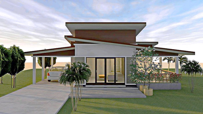 สำหรับบ้านสไตล์โมเดิร์นหลังนี้ มีขนาดกะทัดรัด เหมาะสำหรับครอบครัวขนาดเล็ก ตัวบ้านประกอบไปด้วย 2 ห้องนอน 1 ห้องน้ำ 1 ห้องครัว 1 ห้องนั่งเล่น พร้อมโรงจอดรถ และพื้นที่ระเบียงนอกบ้าน โดยมีงบประมาณในการก่อสร้างเริ่มต้นที่ 8.5 แสนบาท