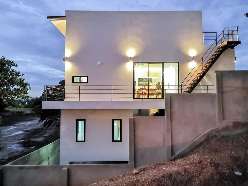 จากด้านหน้าเราอาจจะคิดว่าบ้านหลังนี้มีชั้นเดียวและมีขนาดเล็ก แต่หากมองจากด้านข้างเราจะเห็นว่าตัวบ้านตั้งอยู่บนพื้นที่เนินเขาริมแม่น้ำ นั่นจึงทำให้ส่วนหนึ่งของตัวบ้านอยู่ต่ำกว่าระดับพื้นดิน