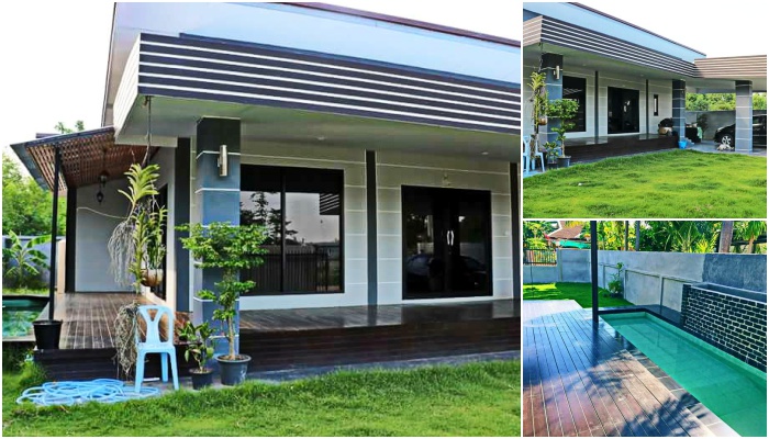 และนี่ก็เป็นไอเดีย บ้านสไตล์โมเดิร์นชั้นเดียว ที่ไม่น่าเชื่อว่าจะมีราคาค่าก่อสร้างเพียง 700,000 บาทเท่านั้น แถมยังมีพื้นที่ใช้สอยครบครัน ประกอบไปด้วย 3 ห้องนอน ห้องน้ำ ห้องโถงกลาง ห้องครัว และเฉลียงรอบบ้าน ใครที่กำลังมองหาแบบบ้านสวยๆ สักหลัง ต้องลองนำดีไซน์บ้านหลังนี้ไปปรับใช้ดูค่ะ