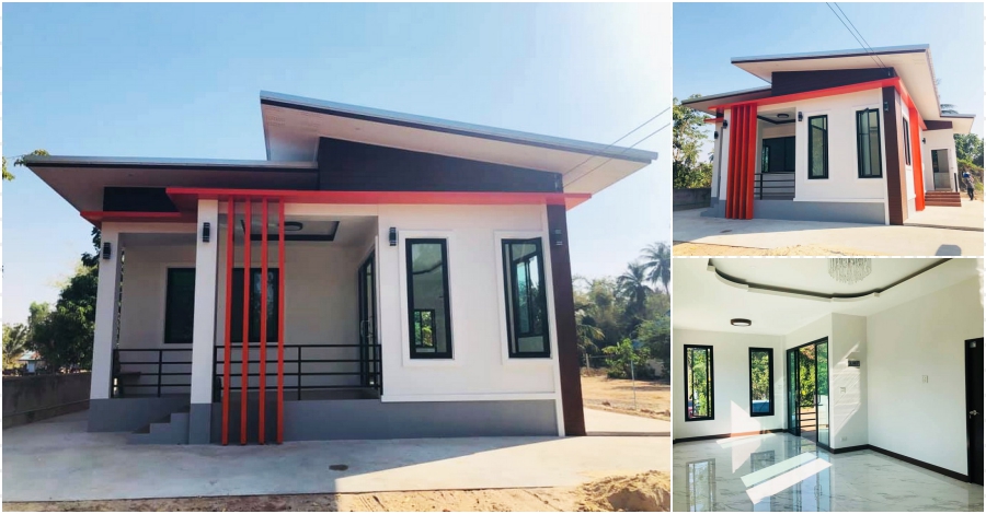 สำหรับบ้านหลังนี้เป็นบ้านชั้นเดียวที่ถูกออกแบบด้วยสไตล์โมเดิร์น ตัวบ้านมีขนาดที่พอเหมาะ ด้านการตกแต่งนั้น หลังคาของบ้านเป็นหลังคาทรงเพิงหมาแหงน ผนังภายนอกถูกตกแต่งด้วยสีขาวยืนพื้น แซมด้วยสีน้ำตาล และสีแดงเพื่อเพิ่มลูกเล่นให้กับบ้าน