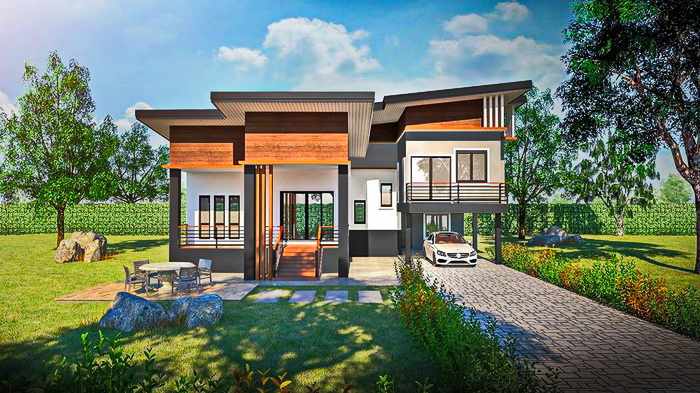 สำหรับบ้านขนาดชั้้นครึ่งสไตล์โมเดิร์นหลังนี้ประกอบไปด้วย 3 ห้องนอน 3 ห้องน้ำ 1 ห้องรับแขก 1 ห้องนั่งเล่น 1 ห้องดนตรี 1 ห้องครัว 2ห้องเก็บของ 1 ที่จอดรถ มีพื้นที่ใช้สอย 232 ตารางเมตร ราคาก่อสร้างอยู่ที่ 2.3 ล้านบาท