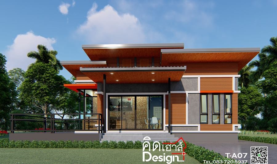 บ้านหลังนี้เป็นผลงานการออกแบบจาก คิดเฮาส์ Design ลักษณะเป็นบ้านยกพื้นชั้นเดียว ตัวบ้านก่ออิฐฉาบปูน ตกแต่งภายนอกด้วยผนังปูนเปลือยขัดมัน แซมด้วยผนังไม้เทียมสีอ่อน มุงหลังคาเมทัลชีททรงเพิงหมาแหงนเล่นระดับ