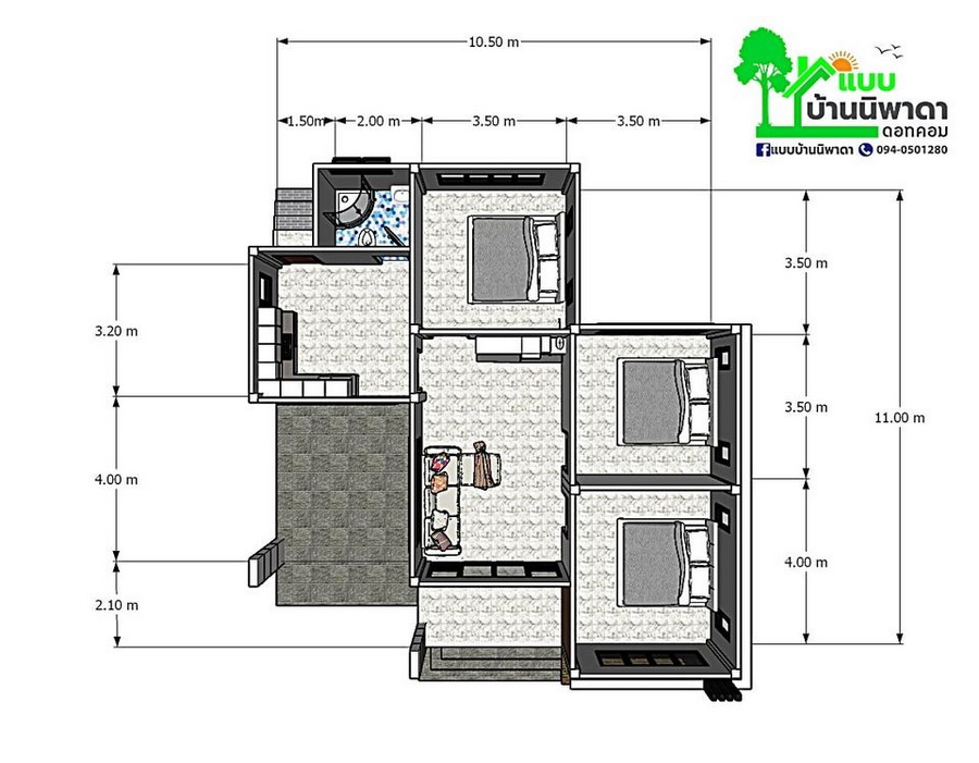 แบบบ้านสไตล์โมเดิร์นหลังนี้ประกอบไปด้วย 3 ห้องนอน 1 ห้องน้ำ 1 ห้องโถงนั่งเล่น 1 ห้องครัว พร้อมที่จอดรถ 1 คัน เพื่อน ๆ ที่สนใจข้อมูลเพิ่มเติม สามารถสอบถามได้จากช่องทางติดต่อด้านล่างนี้ได้เลยครับ