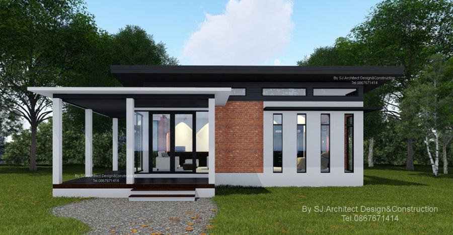 หากใครกำลองมองหาแบบบ้านขนาดพอเหมาะสักหลัง วันนี้ ในบ้าน ก็ได้นำ แบบบ้านสไตล์โมเดิร์น มาฝากทุกท่านค่ะ เป็นบ้านขนาดกะทัดรัด มีเนื้อที่ 65 ตารางเมตร ตัวบ้านตกแต่งโดดเด่น เน้นรูปลักษณ์ทันสมัย พร้อมพื้นที่พักผ่อนครบครันทั้งภายในและภายนอก เป็นผลงานจาก SJ.Architect Design&Construction เราไปชมกันเลยค่ะ