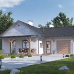 ออกแบบตัวบ้านด้วยโครงสร้างคอนกรีต ใช้รูปทรงสี่เหลี่ยม ยื่นหด ตามสไตล์บ้านโมเดิร์น เว้นหน้าบ้านให้เป็นเฉลียงเล็กน้อย รับหน้าบ้าน และรองรับกิจกรรมก่อนเข้าในบ้าน หลังคาทรงแบน หรือทรงสแลป ซ่อนการระบายน้ำเอาไว้ แต่ยังคงรูปทรงที่ต้องการเอาไว้
